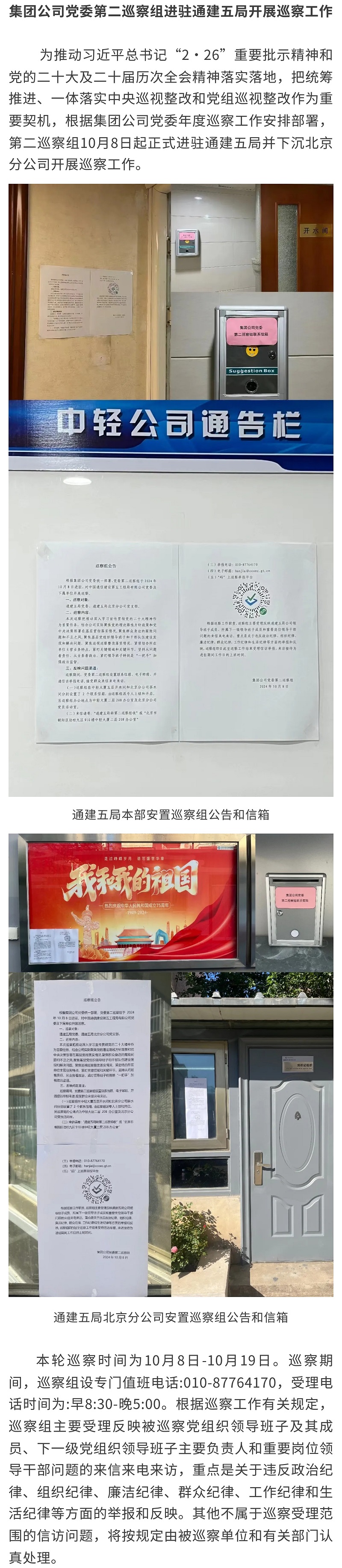 集团公司党委第二巡察组进驻通建五局开展巡察工作