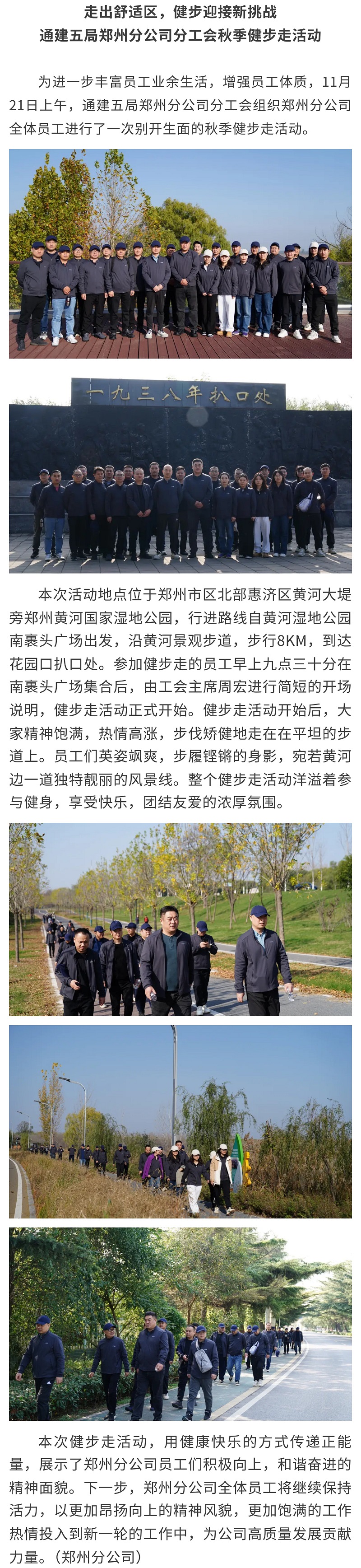 走出舒适区,健步迎接新挑战-通建五局郑州分公司分工会秋季健步走活动