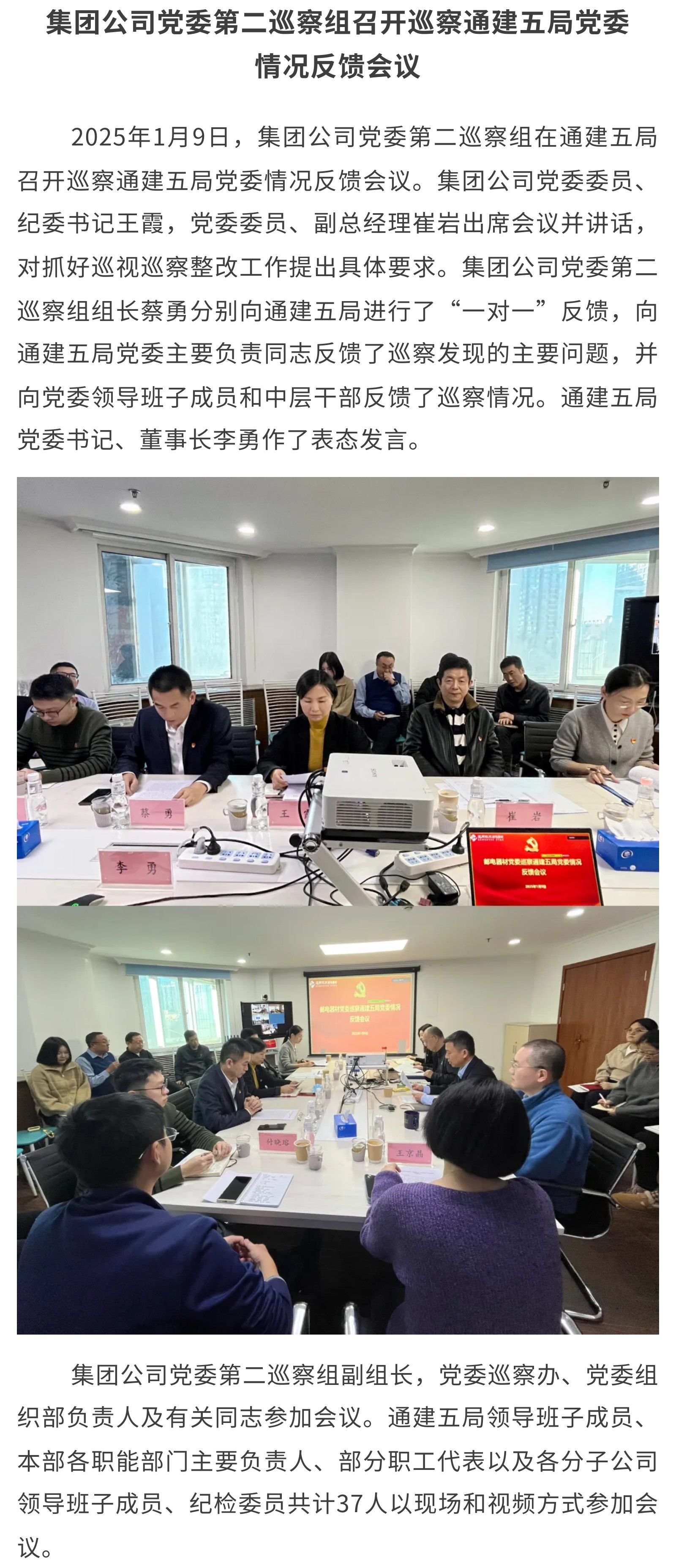 集团公司党委第二巡察组召开巡察通建五局党委情况反馈会议